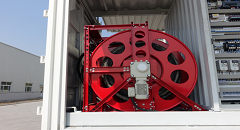 我公司自主研发的大扭矩电动卷盘,使油管的收放由机械替代了人工卷管,实现了真正意义上的机械自动化,解除了传统换油车繁重的不安全的人力缠管工作,这一关键技术的突破,使换油车的功能有了重大飞跃。