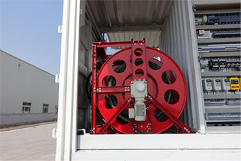 我公司自主研发的大扭矩电动卷盘,使油管的收放由机械替代了人工卷管,实现了真正意义上的机械自动化,解除了传统换油车繁重的不安全的人力缠管工作,这一关键技术的突破,使换油车的功能有了重大飞跃。